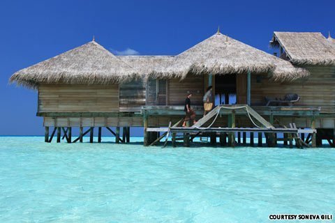 Nằm cân bằng trên mặt nước nông, nơi cư ngụ kiểu Robinson này thuộc hàng ăn ảnh nhất. Hàng xóm cách xa bạn 1000 feet nên cặp vợ chồng có thể thoải mái, trừ phi có yêu cầu thì quản gia mới đến. Giá thuê 1593 đô la/đêm.