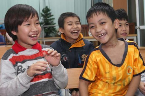 | Ít tai biết rằng, Lê Đức Mạnh (trái) đang mang trong mình chứng u não khó chữa và Phan Thế Huy(áo vàng) phải lắp ống canuyn để thở bởi chứng hẹp thanh quản bẩm sinh vẫn ngày ngày hành hạ em…. Tuy vậy không khó để bắt gặp những nụ cười trong trẻo này nơi lớp học Hy vọng. |
