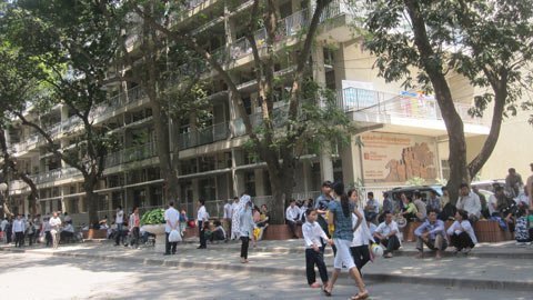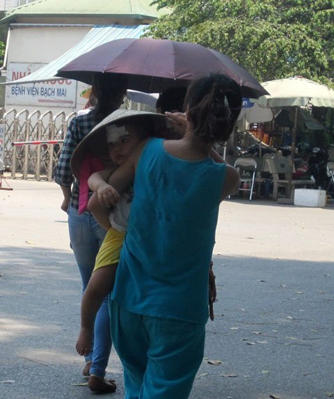 | Mới gần 10h trưa nhưng cái nắng đã khiến bầu không khí trong bệnh viện Bạch Mai (Hà Nội) ngột ngạt, bí bách đến khó chịu. |