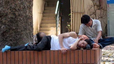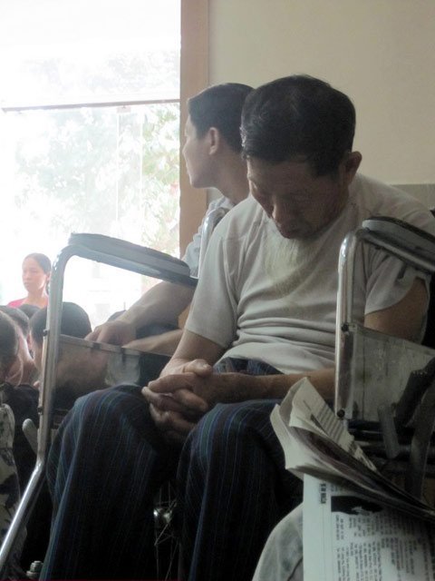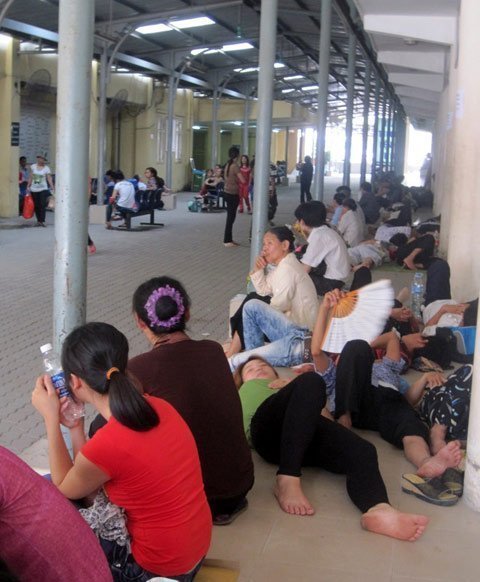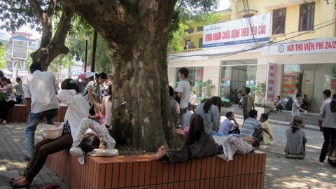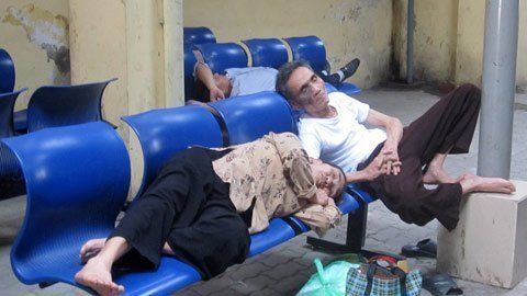 Nhiều người cố chờ sang buổi chiều để khám bệnh và qua trưa bằng giấc ngủ tạm. |