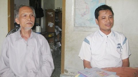 | Ông nội Nguyễn Văn Lợng (trái) và anh Nguyễn Thanh Tùng kể về khả năng của Nguyễn Đức Bảo. Ảnh: PL&XH |