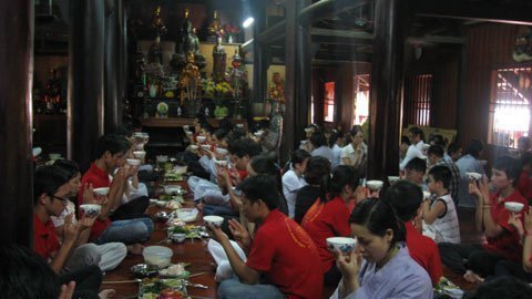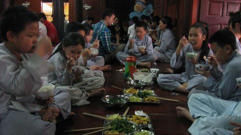 | Bữa cơm chay tại thiền viện Sùng Phúc. (Ảnh: La Hoàn) |