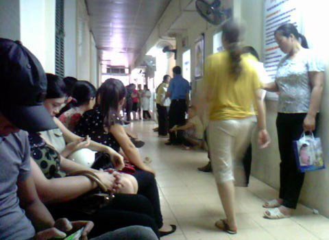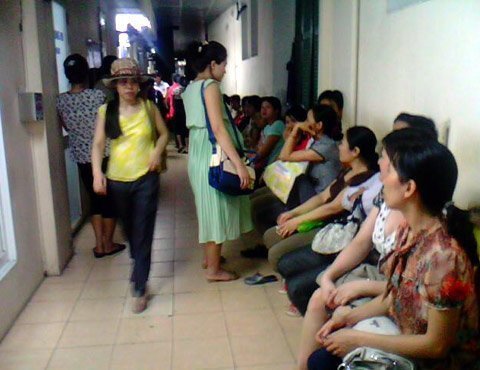 Không đủ ghế, bà bầu phải đứng ngồi vạ vật cho dù cái bụng đã to vượt mặt hay mới chỉ đang nhu nhú là chuyện không phải xa lạ đối với bất cứ ai đã từng đến với phòng khám sản 56 Hai Bà Trưng (Hà Nội).