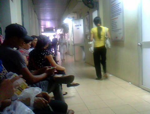 Ngay từ bàn chỉ dẫn bước vào, bà bầu này trông đã rất mệt mỏi. Sau khi đặt giấy khám, bà bầu đi ra tìm một chỗ để ngồi, nhưng đi dọc cả dãy chờ không một ghế nào trống. Bà bầu đành đứng sát vào cạnh tường, tựa lưng và đứng chờ cho đỡ mỏi. Được một lúc, thì bà bầu mon men ra chỗ 2 người đàn ông rất trẻ đang ngồi chễm chệ trên ghế và nhẹ nhàng: