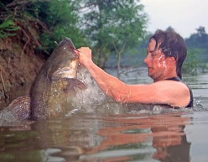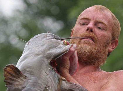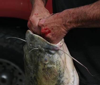 Chỉ chờ tên cá da trơn khổng lồ há miệng đớp vào tay, người săn cá sẽ chớp cơ hội tóm lấy cái miệng rộng ngoác của nó, luồn ngón tay vào mang hoặc vách hô hấp, rồi lôi tuột nó ra khỏi hang.
