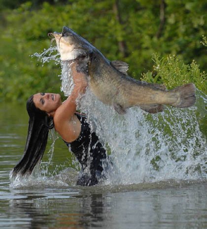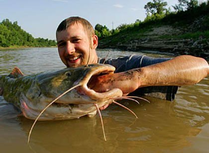 Loài cá mà những người bắt cá bằng tay này nhắm đến là loài cá da trơn khổng lồ. Những con cá bắt bằng tay phải có trọng lượng khổng lồ, nặng vài chục kg.