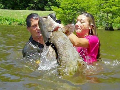 Ở trên bờ con người có sức mạnh, sự nhanh nhẹn, nhưng môi trường nước lại ủng hộ loài cá này. Nếu không có sức mạnh và kinh nghiệm, người săn cá có thể bị cắn đứt tay, hoặc ít ra sẽ bị cắn toạc da. Đã từng có người tử nạn vì bị con cá quá lớn phập bộ hàm vào tay và kéo xuống đáy sông sâu.