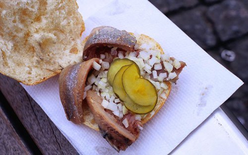 | Bánh kẹp cá trích muối – đặc sản đường phố của Hà Lan. |