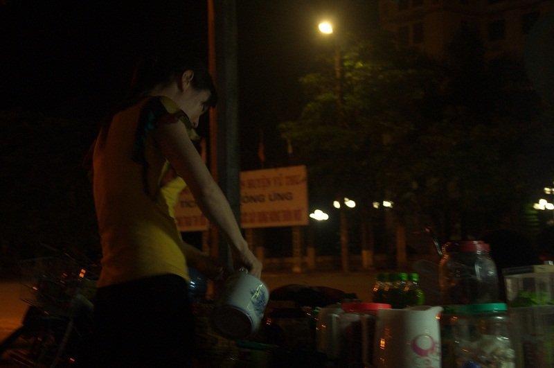 “Chỉ đêm đông khách là cả 3 cùng bán, còn buổi sáng 8 giờ mở hàng thì chỉ một người trông còn 2 người về nhà giặt giũ, dọn dẹp và tranh thủ ngủ. Mọi người ở đây tốt bụng lắm, có anh thấy chúng mình dùng quạt nan khổ sở còn về nhà vác ra cho chúng mình mượn cái quạt máy chạy bằng acquy”, chị Th. nói.