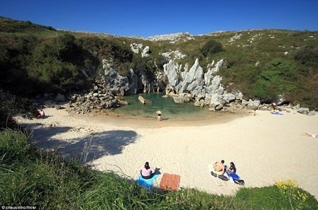 Nằm cách xa khu dân cư, giữa những đồng cỏ xanh ngút mắt, ‘bãi biển’ Gulpiyuri là một trong những địa điểm ‘bất thường’ của vùng bờ biển gần thị trấn Llanes, phía bắc Tây Ban Nha.