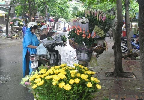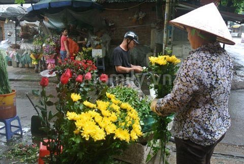 từ cổng vào trong chợ,chị Phương đã thấy những hàng bán hoa tươi, trầu cau,