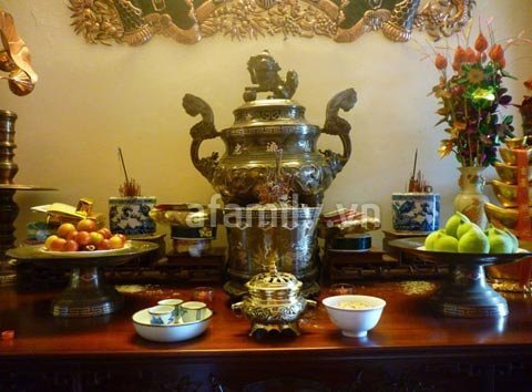 vàchuẩn bị chu đáo xong, chị mang lên bàn thờ tổ tiên thắp hương, khấn lễ