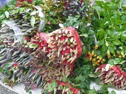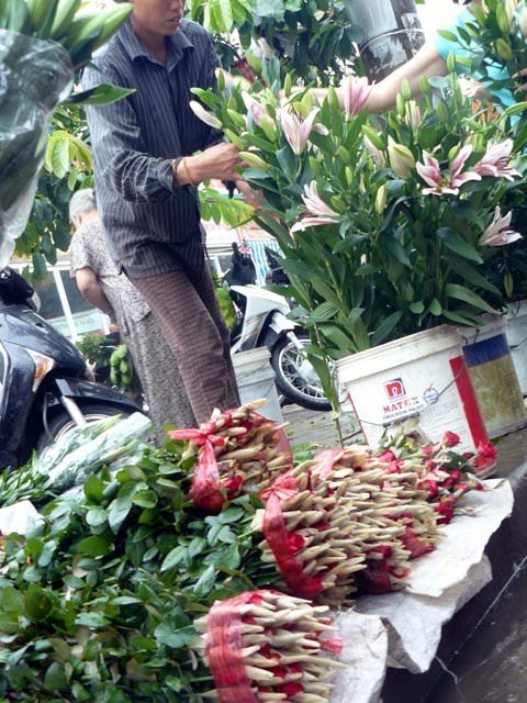 Không chỉ ở các chợ, mà ở một số nơi bán hoa bó sẵn như khu vực bán hoa tạm trên đường Nguyễn Trãi - Thanh Xuân - Hà Nội, một bó hồng khoảng 50-100 bông đã được chọn lựa rồi bó gọn gàng, đồng thời buộc nơ trang trí để người dân có thể mua đi tặng cũng chỉ có giá từ 30-50 nghìn đồng.