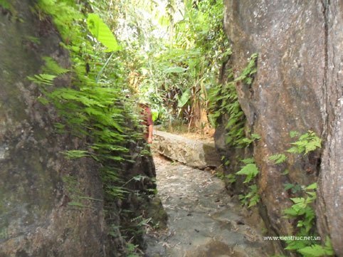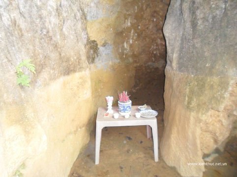 | Muốn vào hang, phải lách người qua khe hẹp, nhiều đoạn phải bò. Trước khi vào, phải hành lễ tại đây... |
