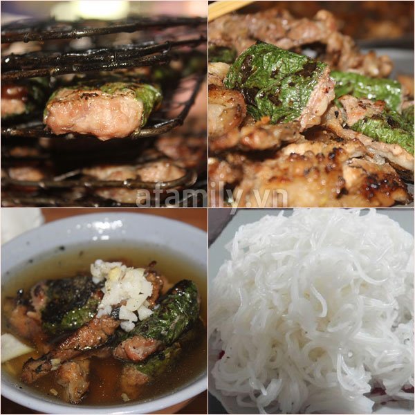 | Bún chả bọc lá xương sông độc đáo tại ngõ chợ Đồng Xuân. |