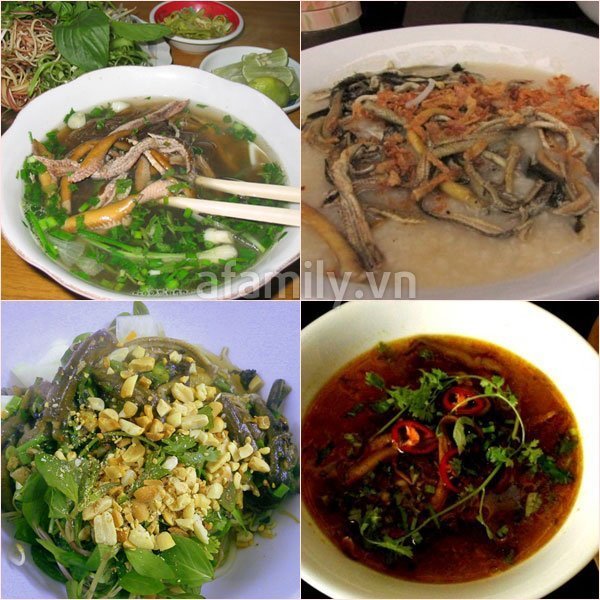 bánh đa cua Hải Phòng, cơm cháy Ninh Bình, miến lươn Nghệ An, bún bò Huế, mì