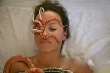 Có vô rất nhiều kiểu massage có hiểu quả nhưng lại… vô cùng ghê rợn. Đó là ’chiêu’ massage bằng ... rắn.