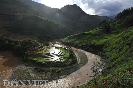 Tháng 6 mưa đổ từ lưng trời xuống những triền núi dốc đứng, nước từ khe đổ tràn những thửa ruộng bậc thang ở Mù Cang Chải (Yên Bái). Có nước, đất hạn bỗng ải ra dưới những luống cày, chờ mạ.