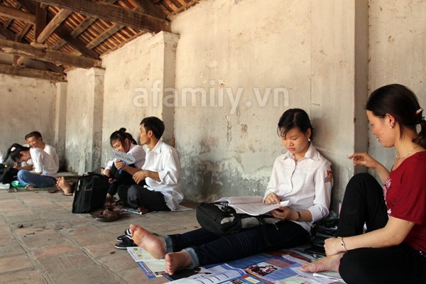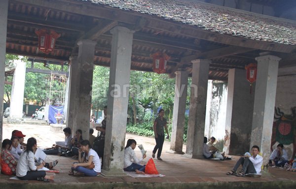 Nhiều phụ huynh và sĩ tử nhờ sân của chùa Láng để nghỉ ngơi