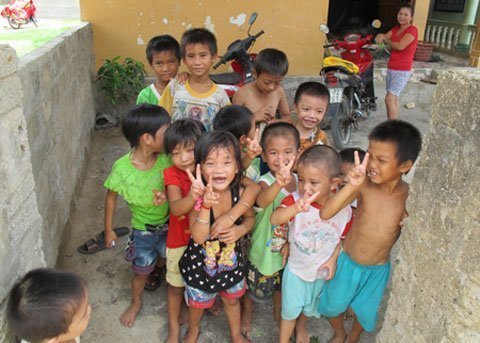 | Ở làng Cồn Sẽ đi đâu cũng gặp trẻ con. |