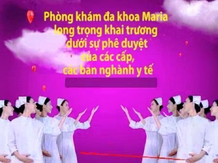 Trong một đoạn clip giới thiệu được tải lên trang mạng YouTube, phòng khám Maria đã “tuyên bố”: “Phòng khám Maria long trọng khai trương dưới sự phê duyệt của các cấp, các ban ngành y tế. Phòng khám đa khoa Maria chuyên sản phụ khoa với đội ngũ giáo sư, bác sĩ đến từ các bệnh viện danh tiếng trên toàn quốc, cùng với những trang thiết bị tân tiến hiện đại nhất trên thế giới hiện nay để phục vụ cho việc khám và chữa bệnh. Chúng tôi có đội ngũ y bác sĩ giỏi và tận tâm nhất”.