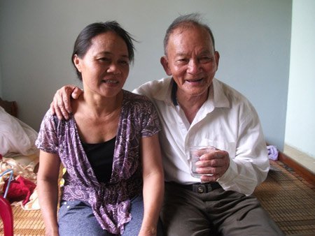 | Niềm hạnh phúc cuối đời của đôi bạn đời Mai Trọng Điệp (85 tuổi) và Cao Thị Thủy (49 tuổi) dành cho nhau (ảnh: DT). |