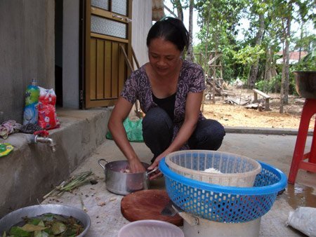 đang tất bật chuẩn bị cơm trưa. Hỏi thăm, chị không ngần ngại cho biết là “vợ