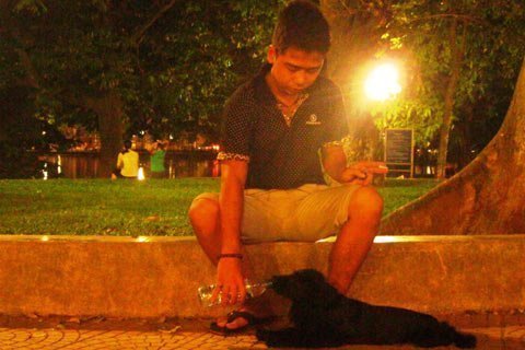 Trời sẩm tối mọi người già có, trẻ có cả những đôi trai gái bắt đầu dắt những con thú cưng của mình ra hồ dạo chơi.
