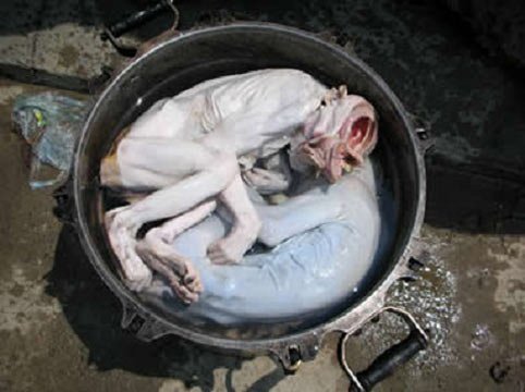 Mất nhân tính là món ăn óc khỉ, thời Từ Hy Thái Hậu đã dùng để chiêu đãi các sứ thần, đến nay nó cũng nằm trong danh sách các món ăn lạ của người giàu. Óc khỉ phải được ăn sống, người ta khoét một lỗ trên mặt bàn ăn, chiếm diện tích bằng 1/3 đầu con khỉ nhô từ dưới lên.