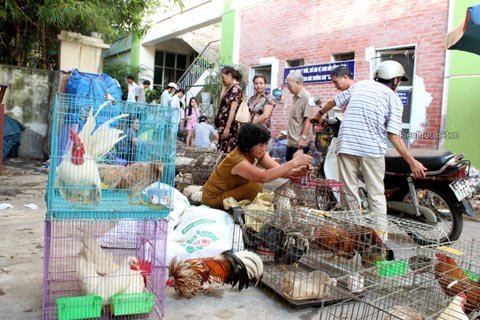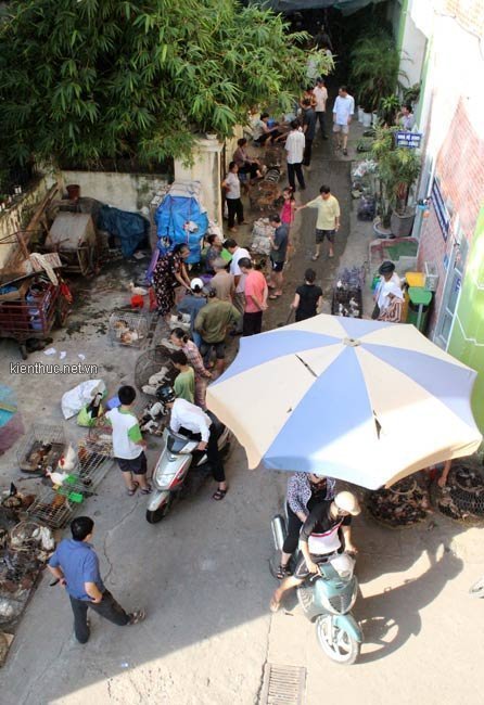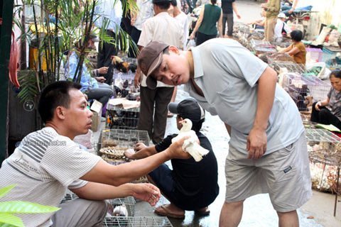 | Phiên chợ sớm ồn ã và huyên náo. Tiếng kẻ bán, người mua, tiếng mèo kêu, chó sủa, gà cục tác và cả những chú gà trống oai vệ cất cao tiếng gáy trong nắng sớm, hòa quyện cùng nhau tạo nên một âm thanh sống động giản dị giữa lòng thủ đô |