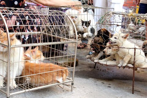 | Đám chó con nghịch ngợm dọa dẫm lũ mèo ở lồng bên |