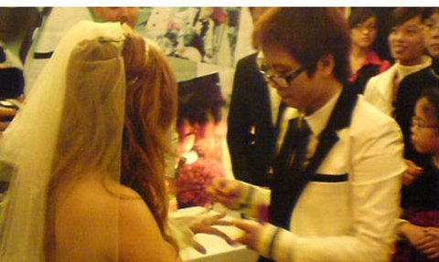 | Cô dâu và "chú rể" trao nhẫn cưới cho nhau (Ảnh: Ngôi sao) |