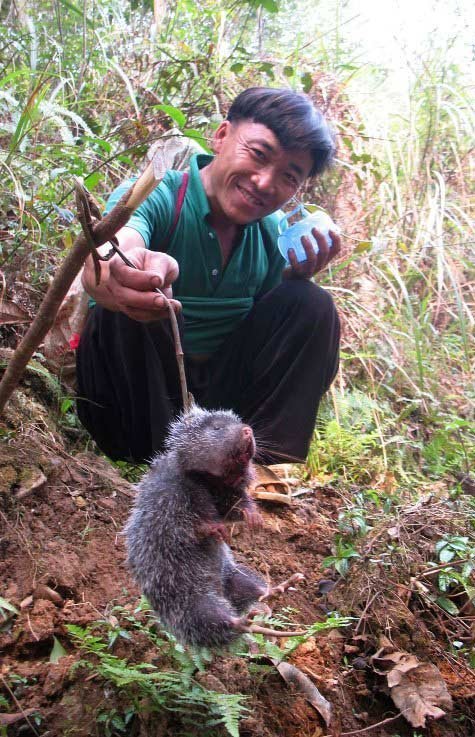 | Một thợ săn đi kiểm tra bẫy, tóm được “món hời” tại Trạm Tấu, Yên Bái. |