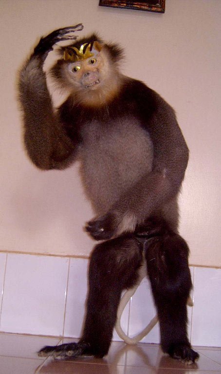 | Một con voọc bị giết và nhồi trấu ngắm… chơi ở Đắk Nông. |