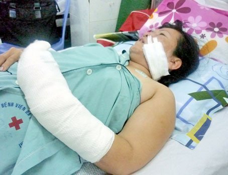 Nạn nhân đang nằm điều trị tại bệnh viện (Ảnh: Báo Đồng Nai)