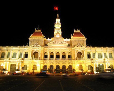 | Ủy ban nhân dân thành phố lung linh trong đêm. |