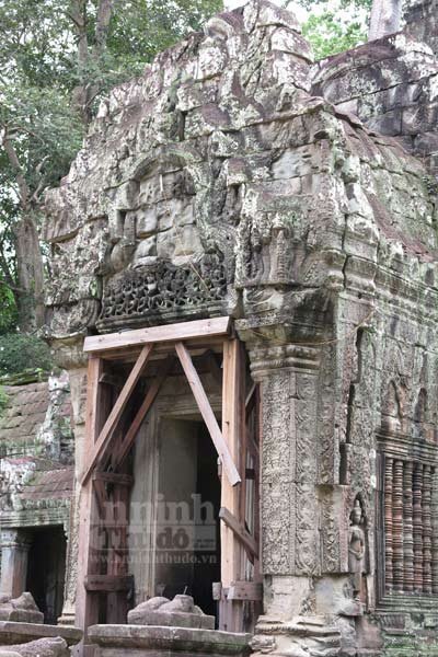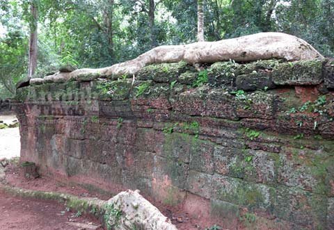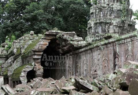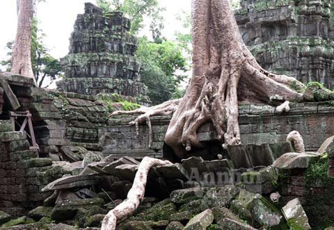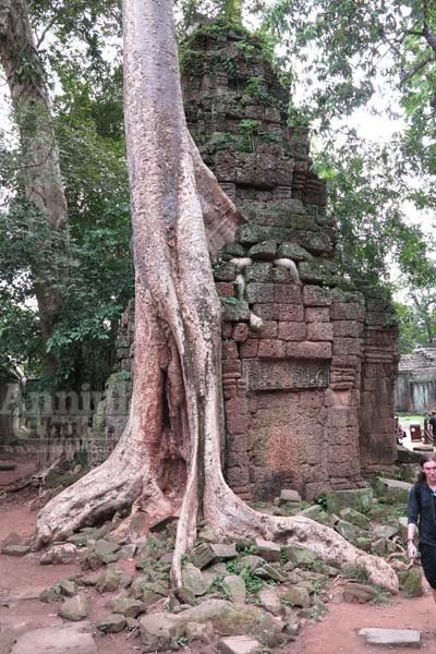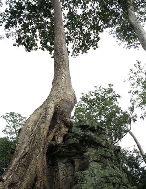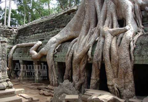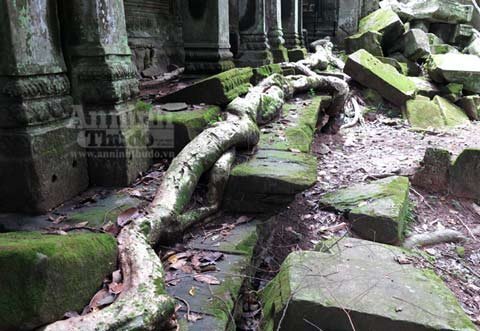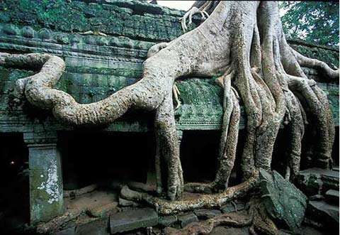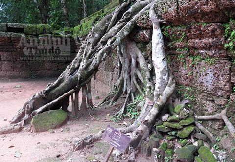 Trải qua cả trăm năm, bộ rễ những cây Tung, Knia lớn dần… rồi một ngày kia, nó xuyên phá, đẩy sập bức tường đá gần nghìn năm tuổi của đền Ta Prohm.