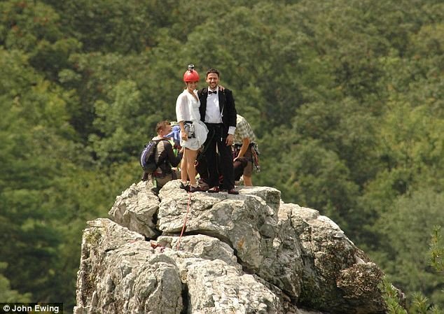 Hình ảnh của cô dâu Antonie Hodge Ewing và chú rể Bob Ewing trên đỉnh đỉnh nhỏ của Seneca Rocks ở Tây Virginia đã trở thành một hiện tượng trên Internet, với hơn 500.000 lượt xem.