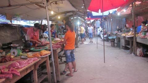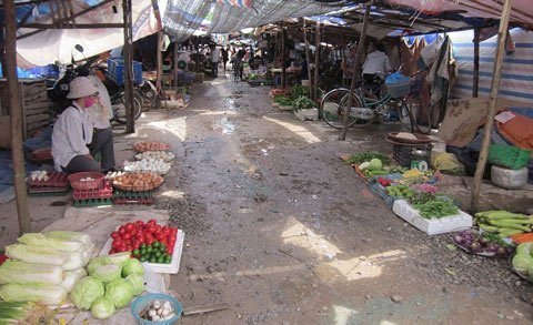 Đã gần trưa nhưng chợ chỉ lác đác người đi chợ. |
