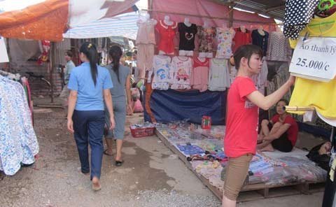 Chị Huyền (bán quần áo) cho biết, quần áo ở chợ này rất rẻ, phù hợp với túi tiền của công nhân, sinh viên. Tuy nhiên, ở thời bão giá này, công nhân họ lo miếng ăn chưa đủ nên chẳng ngó nghê gì đến quần áo, thời trang.