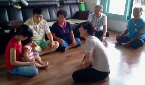 | Một buổi gặp gỡ giữa gia đình một cô dâu và đại diện tổ chức hỗ trợ gia đình đa văn hóa. |
