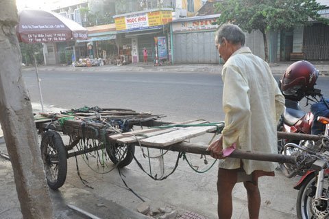 Hàng ngày ông vừa kéo xe, vừa tranh thủ nhặt đá, gạch. Cát thì ông đến các sông, suối để lấy. Hoặc trên đường thấy nhà ai có đống cát thì ông vào xin vài vốc trong tay đem về dồn đống lại.