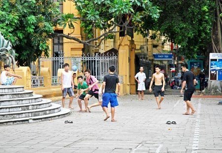 | Thiếu sân chơi, vỉa hè biến thành sân đá bóng thiếu nhi |