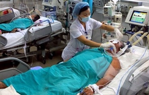| Bác sỹ điều trị cho bệnh nhân bị nhiễm liên cầu lợn. Ảnh: TTXVN |
