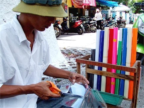 | Với nghề dán điện thoại, chỉ cần 1 chiếc ghế nhực và số vốn 500 ngàn đồng đã có thể kiếm đến hàng chục triệu đồng/tháng |