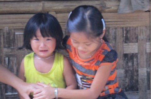 Thấy khách lạ, bé Lương Bảo Thiên Lam (3 tuổi) khóc ré lên, chạy sang nhà hàng xóm. |