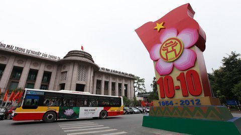 | Sừng sững biểu tượng kỷ niệm ngày Giải phóng Thủ đô. |