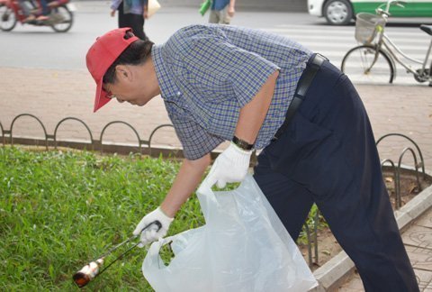 có không ít người không hề quen biết ông cũng đi nhặt rác.