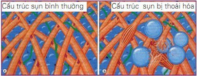 Quá trình lão hóa dẫn đến mạng lưới các sợi Collagen này ngày càng cứng lại và