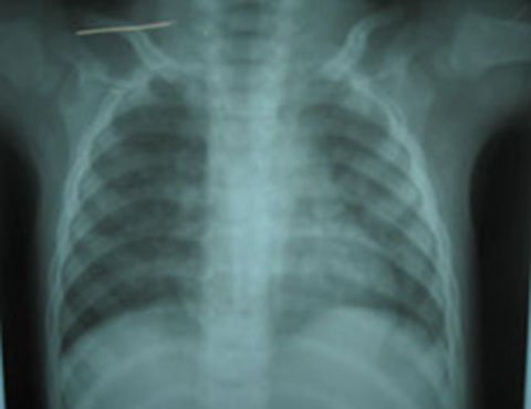 | Phim chụp X – Quang cho thấy phổi của bé Q. có vật lạ gây tổn thương. |
